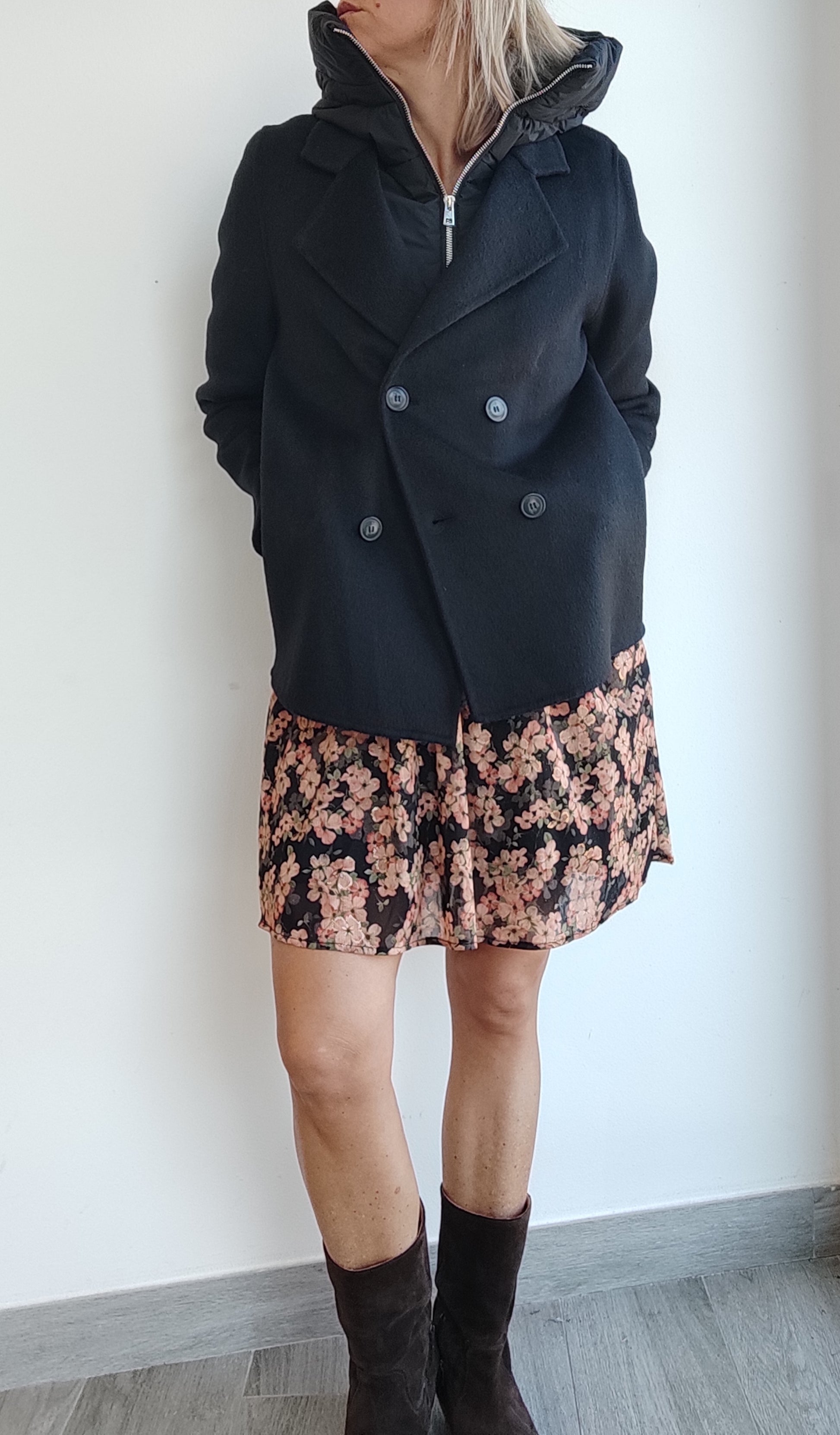 Caban con pettorina corta e cappuccio removibili