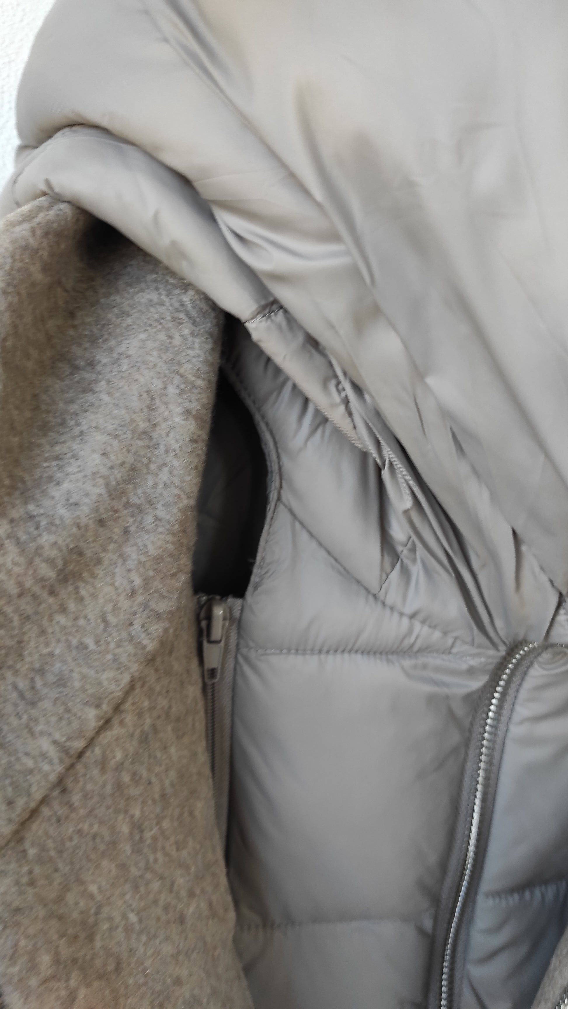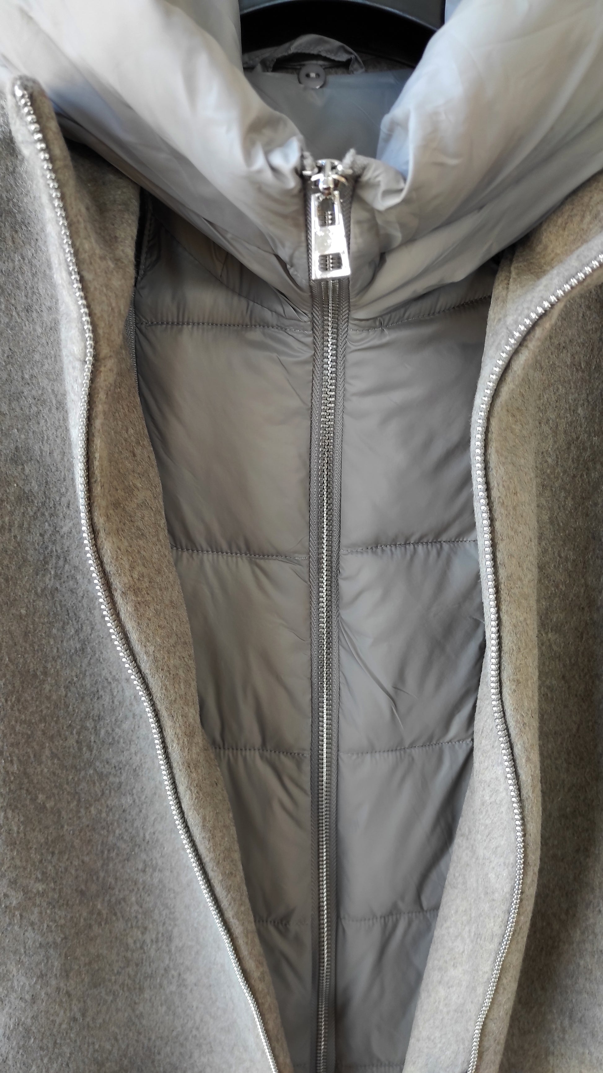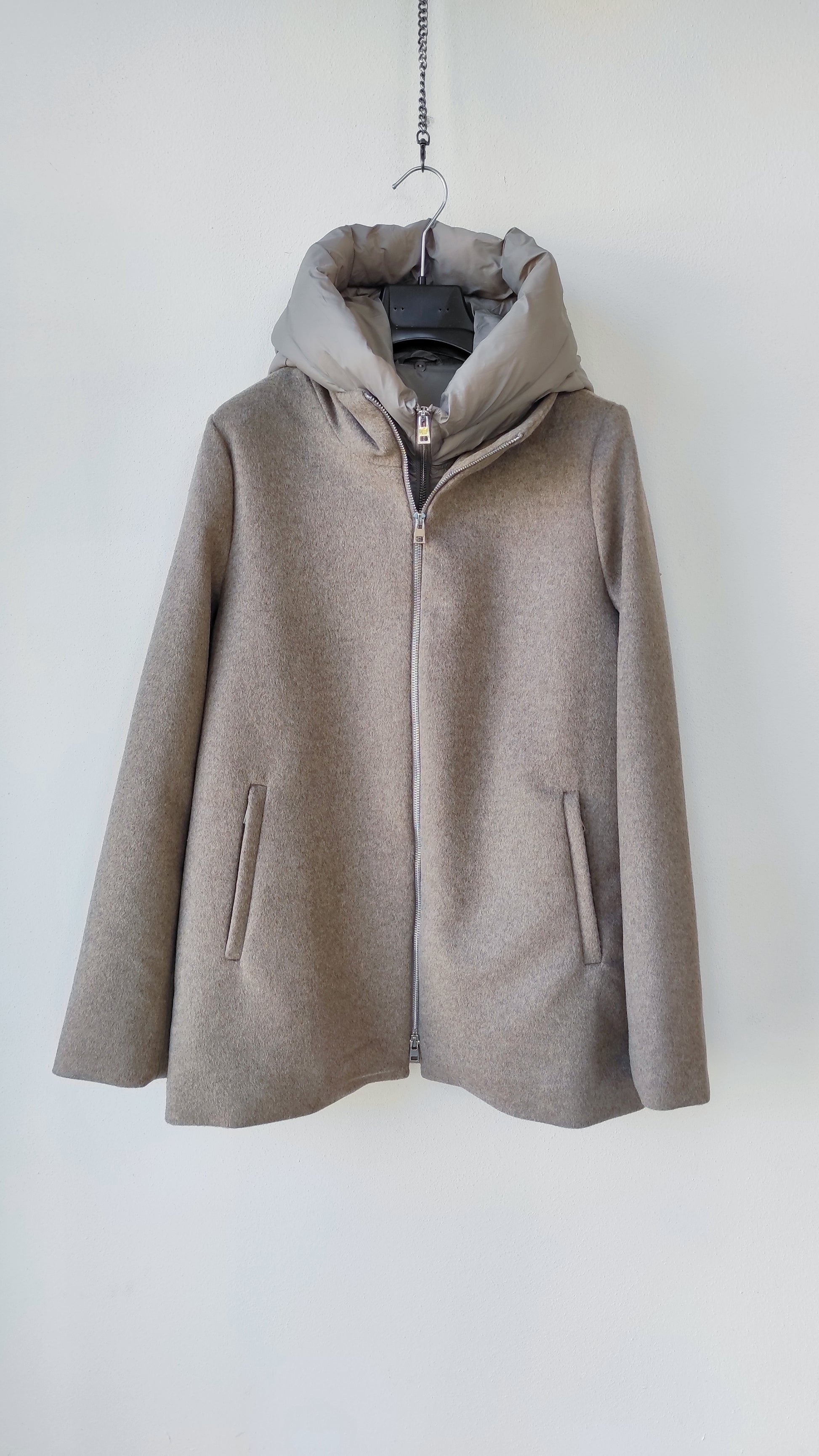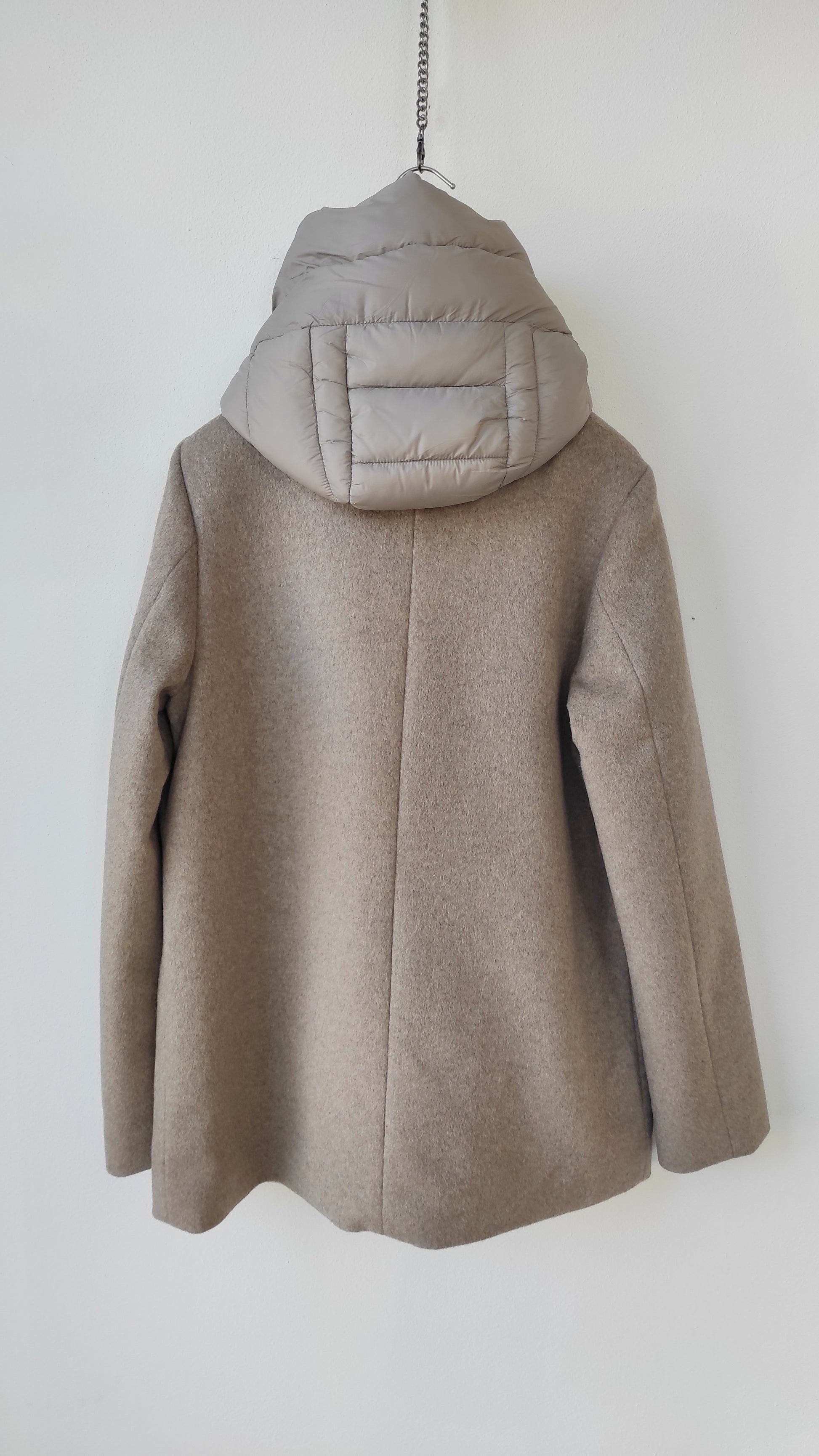 Giaccone in lana pettinata con pettorina e cappuccio removibili
