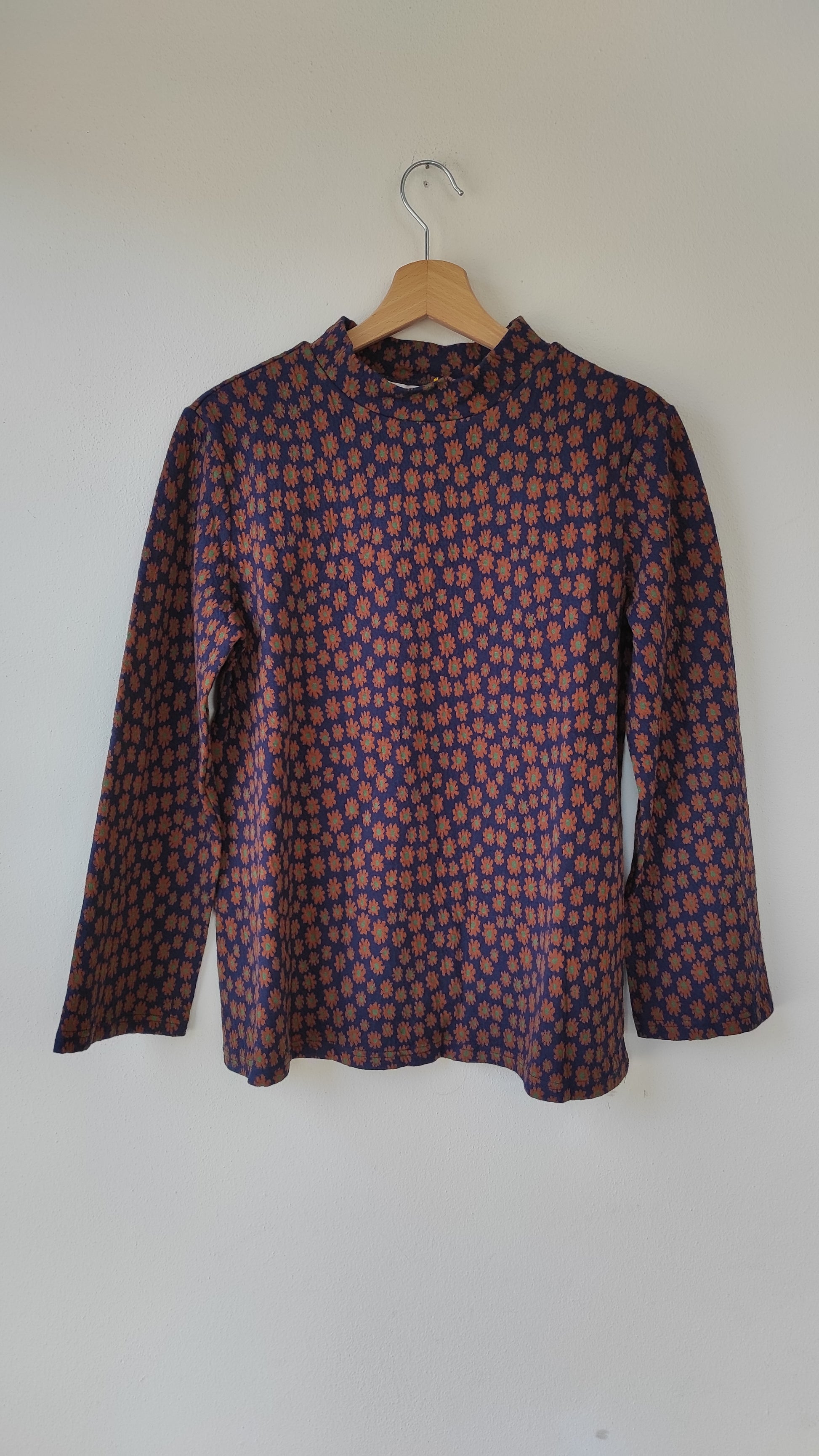 Maglia scollo a lupetto in jersey elasticizzato a fiori.