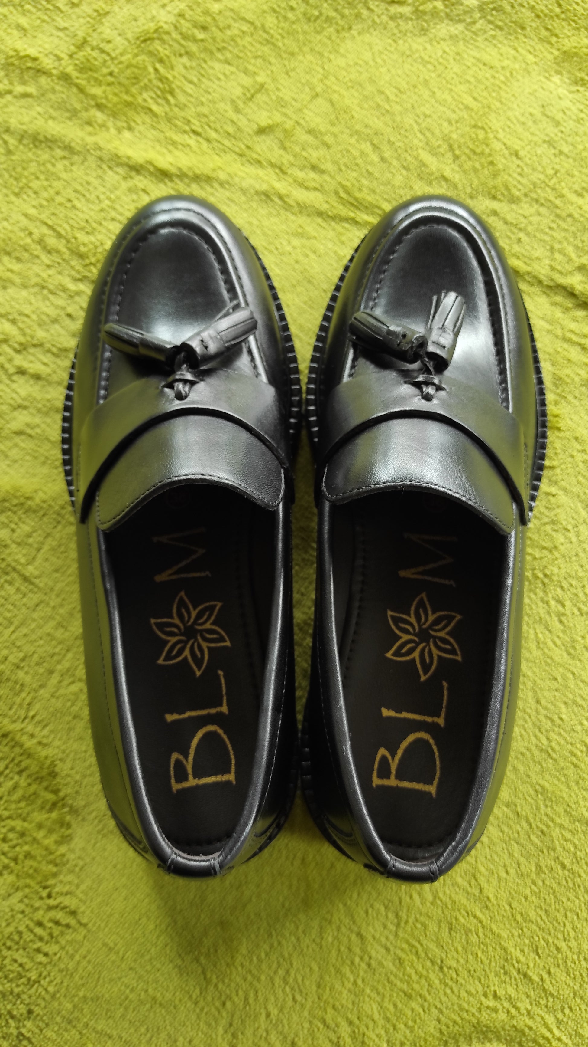Mascherina rialzata con nappe decorative sulla tomaia.