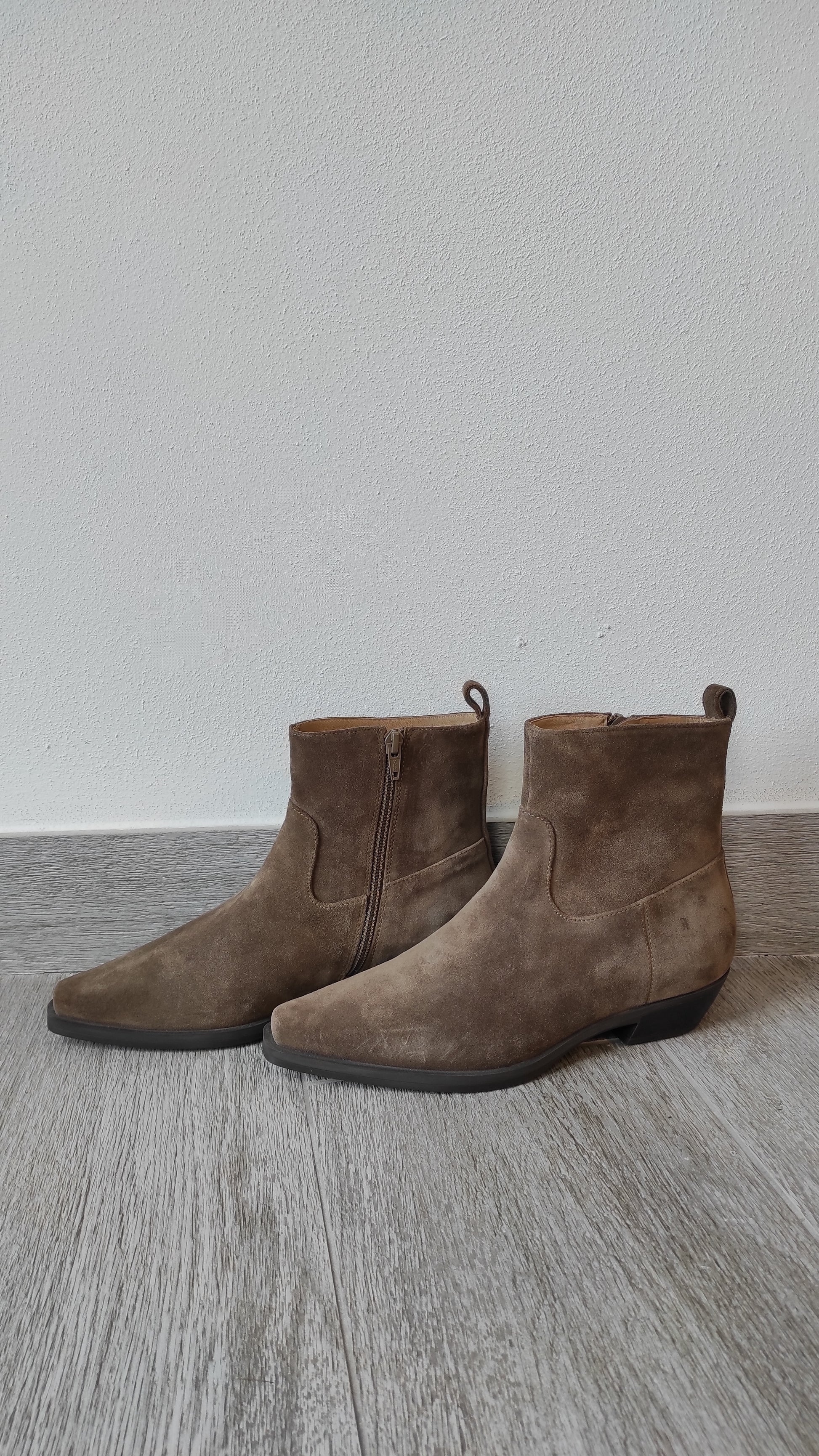 Stivaletti basso con punta sottile in pelle scamosciata.